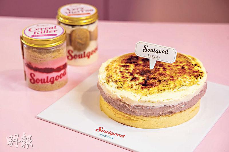 【明報專訊】巴斯克芝士蛋糕是近年甜品界新貴,而它竟然與傳統芋泥擦出新火花。人氣巴斯克芝士蛋糕店Soulgood Bakery不斷追尋新意,在今年實體店開幕時推出每日限量的炙燒奶蓋芋泥巴斯克芝士蛋糕。蛋糕以招牌軟心半熟巴斯克芝士蛋糕層為底,中間夾入一層香滑軟糯手工芋泥,蓋上一層香滑奶蓋後,再用火槍炙烤出一層薄薄的脆口焦糖,4種層次卻能做到整體感覺甜而不膩。品牌創辦人Anjaylia Chan表示,一般的巴斯克芝士蛋糕以單層為主,故她嘗試以多層的巴斯克芝士蛋糕尋求突破,不過要製成豐盛的口感,難就難在要尋找適合的食材來配搭。