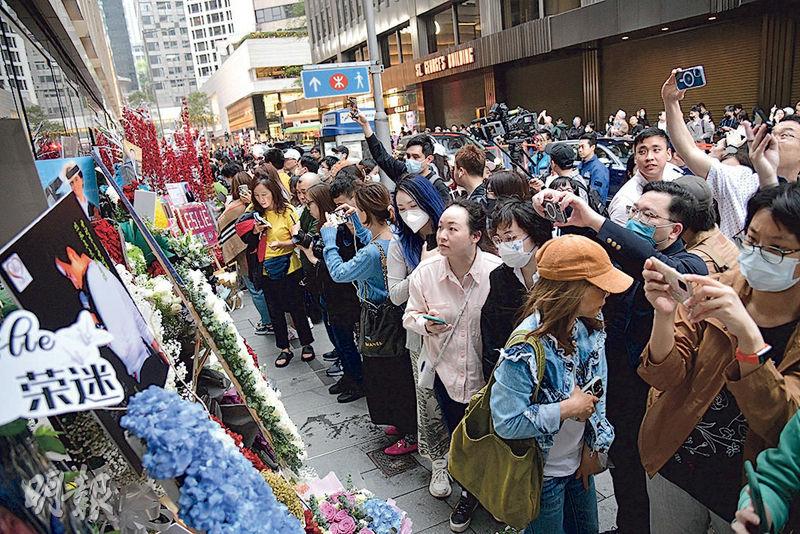 哥哥20年前從中環文華東方酒店墮下,多年來「哥迷」都會到酒店外獻花悼念,昨日酒店外雪廠街路段現花海,花圈有巨型心形、立體星系、兩米高哥哥照片、兩米高紅色紙鶴樹等,花海周圍有不少心意卡、公仔及燈飾等。今年疫情緩和,數百來自各地的「哥迷」包圍酒店外圍,龍尾排至遮打道。傍晚6時43分,是哥哥當年出事一刻,數名「哥迷」亮起手機燈代替燭光,不少人亦默哀,哥哥好友兼攝影師夏永康亦有現身,警方派出多名警員到場維持秩序。酒店對面有數人組成色士風樂隊街頭表演,演奏哥哥的經典金曲,吸引不少途人駐足懷念偶像。