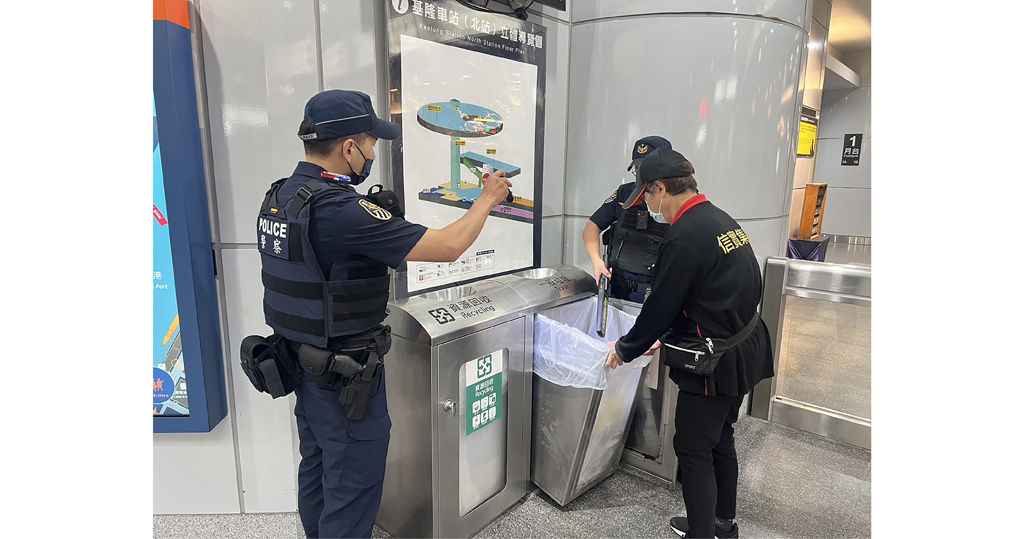 台鐵局接報後立即通知防護團、警政署鐵路警察局勤務指揮中心處置,並要求各站提高警覺加強巡檢。鐵路警察局派警力到基隆站,針對車站月台、廁所及機房等地點逐一檢視,尚未發現可疑人事物。警方將持續在現場執行安全維護工作,並追查涉案者身分。