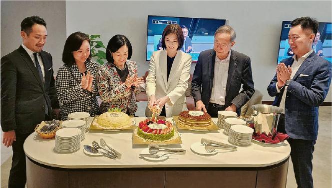 【明報專訊】新民黨立法會議員容海恩(Eunice,右三)噚日46歲生日,適逢周三立法會大會,佢同黨友於前廳切生日蛋糕慶祝,又請一眾記者食西餅。Eunice話最大嘅生日願望係身體健康,又期望新一年喺議會關注更多不同議題,包括文化、音樂、藝術、教育等。