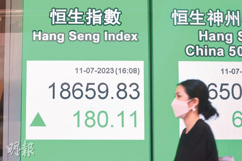 【明報專訊】內地延長地產商紓困政策,官媒並放風指續有刺激經濟措施出台,加上人民幣匯價走強,港股連續第二日反彈,昨曾升逾300點,高見18,800點水平,收升180點,但成交仍不足900億元。分析指出,港股暫時脫險,但仍欠缺動力向上,短期阻力位在18,900至19,100點。