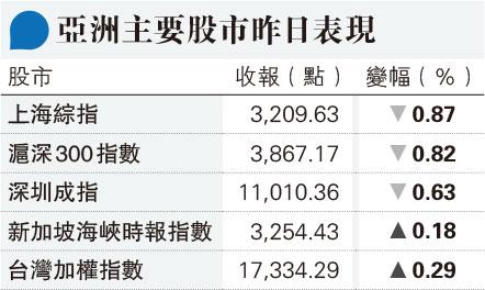 美匯指數連續三日收低於100,人民幣匯價昨日卻結束過去6天的升勢,大跌377點子,跌幅近0.4%,低見7.177。在匯價轉弱同時,A股同樣受壓。當中上海綜指跌幅較深,滬深兩地市場成交稍縮,約有8026億元人民幣。