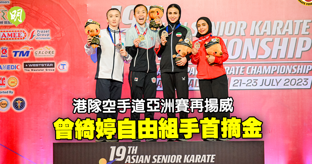 亞洲空手道錦標賽今(22日)續於馬來西亞馬六甲舉行,港隊繼日前劉慕裳及鄭栩彬分別摘下金、銀牌後,再有曾綺婷於女子自由組手50公斤級封后,初嘗亞洲冠軍滋味。