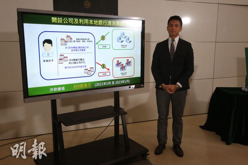 海關財富調查科經過約半年調查,今日(8日)拘捕一名39歲、報稱售貨員的女子,涉嫌從2021年1月至今年5月,在6間不同銀行開設13個公司戶口,處理接近1800宗巨額可疑交易,清洗約9億港元黑錢。女子獲准保釋候查。