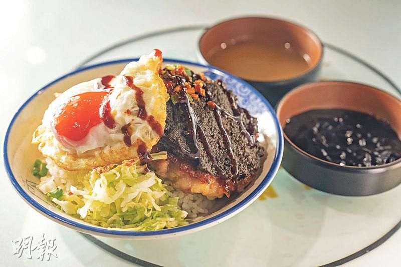 旺角店以肉餅飯為主打,6款肉餅飯全部配上蛋味濃郁的日本蘭王蛋,撈飯一流!當中,Oscar推薦黑松露(醬)墨魚肉餅,豬肉混合爽口的翠玉瓜和彈牙的墨魚粒,肉餅表面塗上一層黑松露醬,一口咬下去,油脂湧出,整個口腔都是濃濃的黑松露香氣,而且肉餅質感紮實,但仍可吃出肉粒和脂肪粒的顆粒感,十足咬口。