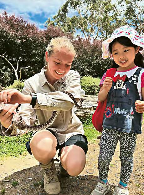 我們帶老六悅悅日間遊園,她最愛的3個show time表演和體驗活動,包括護理員餵無尾熊食竹葉、貓頭鷹飛行、與爬蟲類動物親一親的互動環節。這裏是體驗澳洲野生動物生態的好地方,也是推廣野生動植物保育之處。