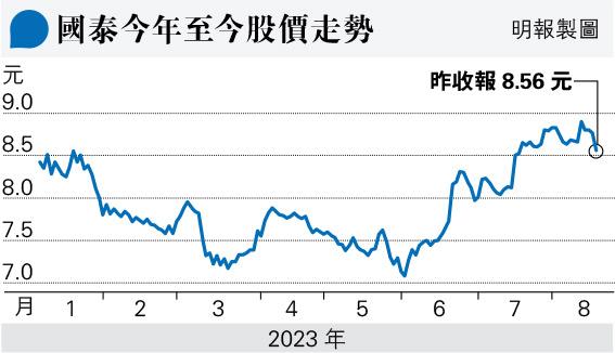 【明報專訊】內地經濟不景,內地與本港股市及人民幣自然成為重災區,尤其是人民幣匯價出現今年以來新低。不過,「面向世界」的國泰(0293),今年的表現相對良好,截至昨日收報8.56元,較去年底的8.5元,仍算錄得正回報;對比恒指今年至今錄得約7.3%的跌幅,已算是大幅跑贏大市。為何在環球經濟受高息壓力下增長緩慢,國泰股價仍然表現硬淨?