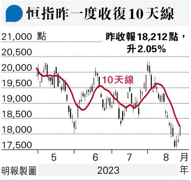 【明報專訊】南水終於結束13日連續淨流出,昨日轉為淨買32.3億元人民幣,北水淨流入亦較上日擴大四成,帶動大市成交重上千億。港股進一步反彈,恒指一度漲427點,企穩18,000點上,收復10天平均線。重磅科網股全線漲,被連沽數日的內房股亦借勢反彈,多隻漲幅達一成。有專家認為,多家大行唱淡中國經濟後,港股及A股跌一輪後有大戶撈底,認為港股目前仍被低估。