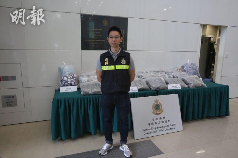 海關前日(22日)在機場揀選查驗一批由美國到港、報稱載有羽絨的空運貨物,經X光檢查發現影像有可疑,於是打開該批貨物檢查,19箱貨之中有9箱貨物有羽絨夾雜事先包裝的懷疑大麻花,涉案懷疑大麻花共重30公斤,市值720萬港元。