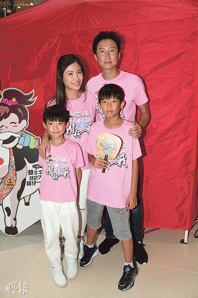 【明報專訊】洪天明與太太周家蔚昨日帶同兩子一家四口參加《夏日牛牛揹仔一戰》齊創親子騎牛牛世界紀錄,問可有機會同父親洪金寶三代同堂亮相,洪天明表示爸爸每日都會買零食給兩孫,但為人低調,相信跟電影或孫兒有關才能打動對方。他大爆父親經常催他生女,「因為早前拍戲有個小女孩演員叫他爺爺,他好開心,要畀這個任務我。雖然我都鍾意女,不過真係兩個夠晒數,其實都有計劃過,但幾難搞,老婆豬年曾想生豬女,但機會已過又話唔生,順其自然,或者弟弟結婚會生小朋友呢」。