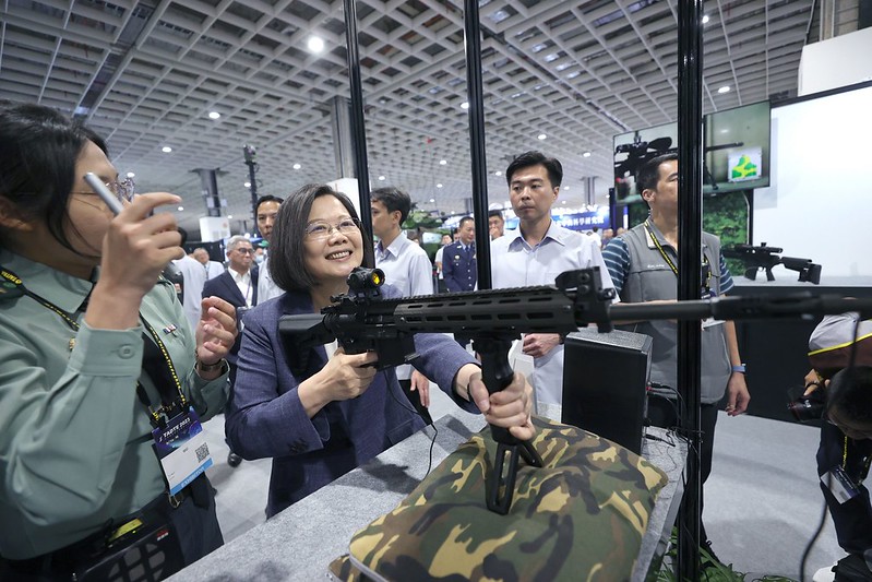 2023台北國際航太暨國防工業展正在台北南港展覽館進行,展期到周六(9月16日)。台灣總統蔡英文今天(15日)參觀後表示,今年參展的主角包含航空、太空、國防、無人系統載具等,每一個方面都可以看到近年來台灣全力發展航太及防務產業的成果,軍民研發、產業的協力合作,更充分展現「國防自主」的實力。