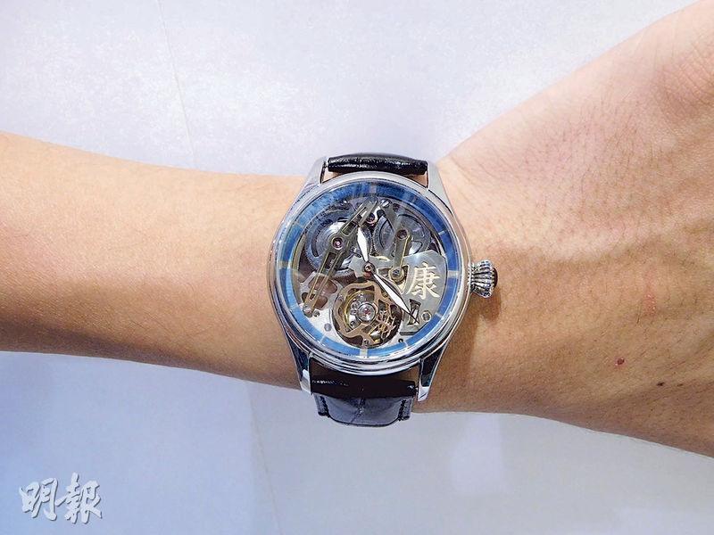 他表示,這隻手表的特點是盡量鏤空,以及有一大一小的兩個「康」字,代表父親和他。其中,小「康」字更是設計在手表下方的轉動橋架上。