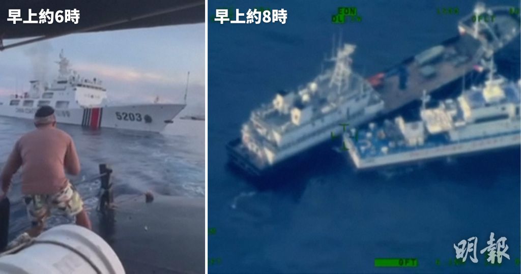 菲律賓武裝部隊表示,中國5203號海警船的危險攔截行動,導致該船與菲律賓武裝部隊承包的補給船,在距離南海仁愛礁約25公里處相撞。在另一相撞事故中,一艘執行例行補給任務的菲律賓海警船,被一艘「中國海上民兵船」撞及。菲方稱,對中方今早的危險、不負責任和非法行為予以最強烈譴責。