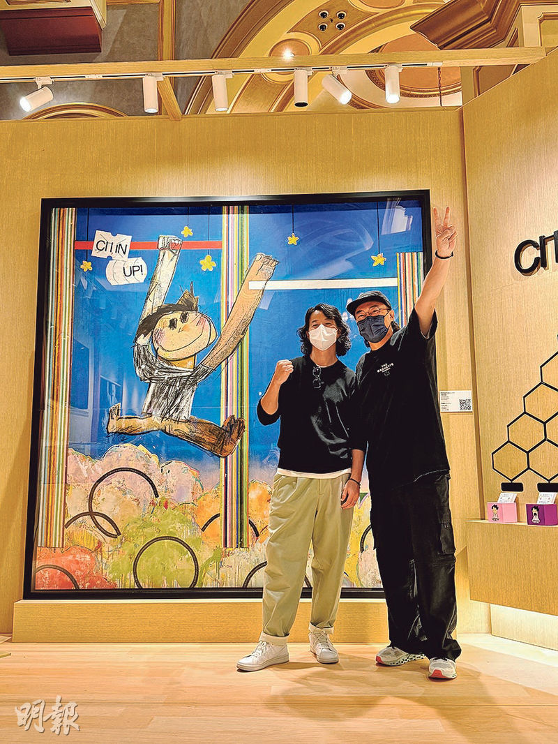 【明報專訊】陳奕迅於澳門舉行9場演唱會,上周一(16日)完成3場後患上感冒,之後的場次要延期。休息一周後,他身體已無大礙,前日到澳門為餘下6場演唱會做準備。他到澳門後,相約藝術家Michael Lau(劉建文)到威尼斯人的《塵大館》為巨型CHIN UP作品剪綵揭幕。