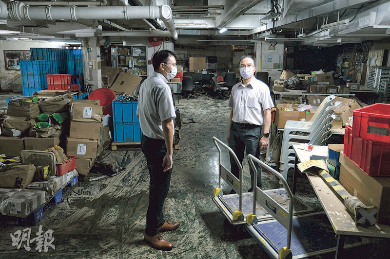 中心員工一夜之間失去辦公場地,現時辦公椅座墊與泥土同色,抽屜仍有發臭積水,剪刀、釘書機等文具陷在泥土。利民會助理總幹事王家敏表示,洪水過後,員工亦無處開緊急會議,曾去KFC開了幾次會,部分員工亦要在貨倉辦公,以貨架為辦公桌。