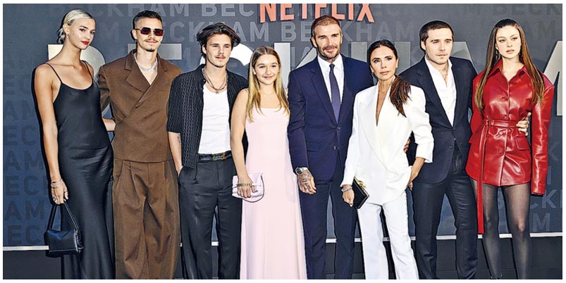 【明報專訊】有關英國「萬人迷」碧咸(David Beckham)的4集紀錄片《碧咸傳》昨日在影視串流平台Netflix上架,前晚在倫敦舉行首映禮。婚後與父母關係疏離的碧咸長子布魯克林(Brooklyn Beckham)帶同太太妮歌拉佩斯(Nicola Peltz)現身,加上其餘兩子一女,一家團圓踏上紅地氈。