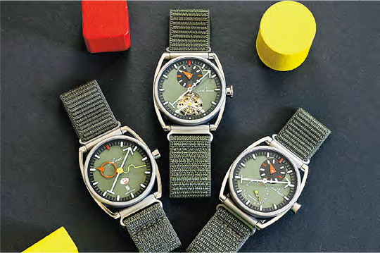 其中La Semaine Louis Erard×Alain Silberstein Khaki和Le Régulateur Louis Erard×Alain Silberstein Khaki可單獨購買,各限量178枚。其中78枚只會連同全新推出的Le Régulateur Tourbillon Louis Erard×Alain Silberstein Khaki陀飛輪腕表,以限量3部曲套裝形式出售。Alain Silberstein表示,第3款腕表選擇用上陀飛輪有其意義。他認為腕表的不同功能各有象徵意義:時分指示日常生活需要知道的社交時間,秒針則是腕表正在運作的提示,日曆則偏向記錄事件,作出規劃和個人思考。陀飛輪的內在意義則是「永不停止的時間」。●