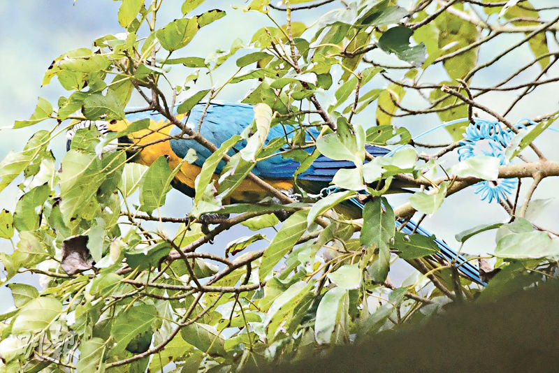 港聞 家鸚鵡腳繩纏樹 消防解困前掙脫飛走 發佈於 2 年 前 2023 年 11 月 15 日 By 明報 【明報專訊】沙田赤泥坪村一名女村民所飼養的一隻金剛鸚鵡「乖乖」,前晚(13日)飛到村屋對落的山坡被困,愛護動物協會接報後,派出職員到場協助,一度爬落山坡搜救,但遍尋不獲。 至昨晨女主人發現「乖乖」在山坡大樹上,腳繩纏着樹枝無法飛走(圖),女主人嘗試拿玩具引牠回地面,消防亦到場架起鋼梯準備營救,但「乖乖」突然掙脫飛走。其後愛協人員再到場與女主人在附近搜尋,但不見「乖乖」蹤影。「乖乖」7個月大,未戒奶,主人早前以數萬元購入。 相關文章: Up Next 灣區熱搜:穗性文化節辦1/4世紀 宣揚健康性觀覓千億商機 不要錯過 不排除肇因女生不滿教學 教師13非禮罪脫 繼續閱讀 贊助商 猜你喜歡