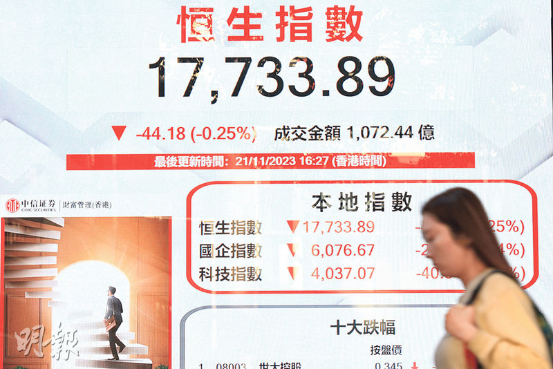 【明報專訊】匯豐發表報告指明年是龍年有利於亞洲股市,預計亞洲股市明年有望上升15%,並給予中國股市「增持」評級,給予港股「中性」評級,將恒指明年底目標價下調6%至19,890點。本港股市方面,美匯指數進一步走弱,推動人民幣走強,恒指昨一度升近300點,重返萬八關,惟午後升勢乏力,最終倒跌44點收市,報17,733點,大市成交上升並續逾千億元。港股通下的北水則連續第二日流出。