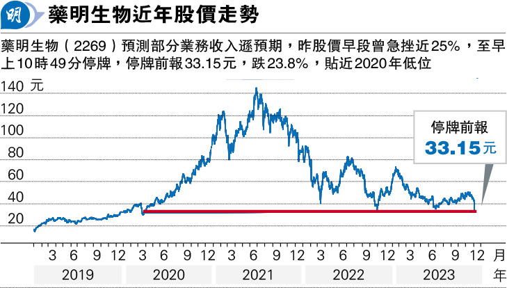 藥明生物揭業務轉弱 股價急挫停牌 昨晚公告:料今年收入仍增10% 今復牌