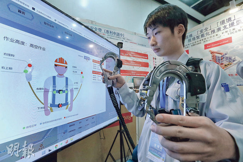雷目科技(深圳)有限公司昨展出「智能安全帶」,稱可減少工人在建築工地發生高空墜落死亡事件。其營業課長(華南地區)佐藤嘉松提到,「智能安全帶」可偵測工人在2米或以上高空作業,當工人沒在限時3分鐘內扣好安全帶,電腦系統將響起警報,管理人員同時會在手機得悉有工人未扣好安全帶。系統會統計響警報次數,以便管理人員事後檢討。「智能安全帶」預計明年成功申請專利。