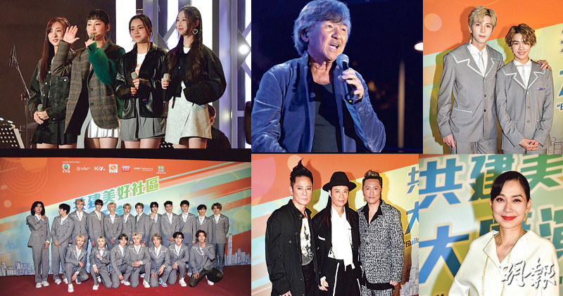 久未踏上舞台獻唱的鄺美雲唱新歌《家》,表示將歌曲送給香港,大家共同建設美好家園。草蜢唱《我們》,表示能為社會出力,又與眾多歌手跨平台演出,是近年非常難得一次。他們有留意《亞洲超星團》,讚後生仔充滿活力,蔡一智笑自己太早出道,羨慕新一代身形長得好高大。