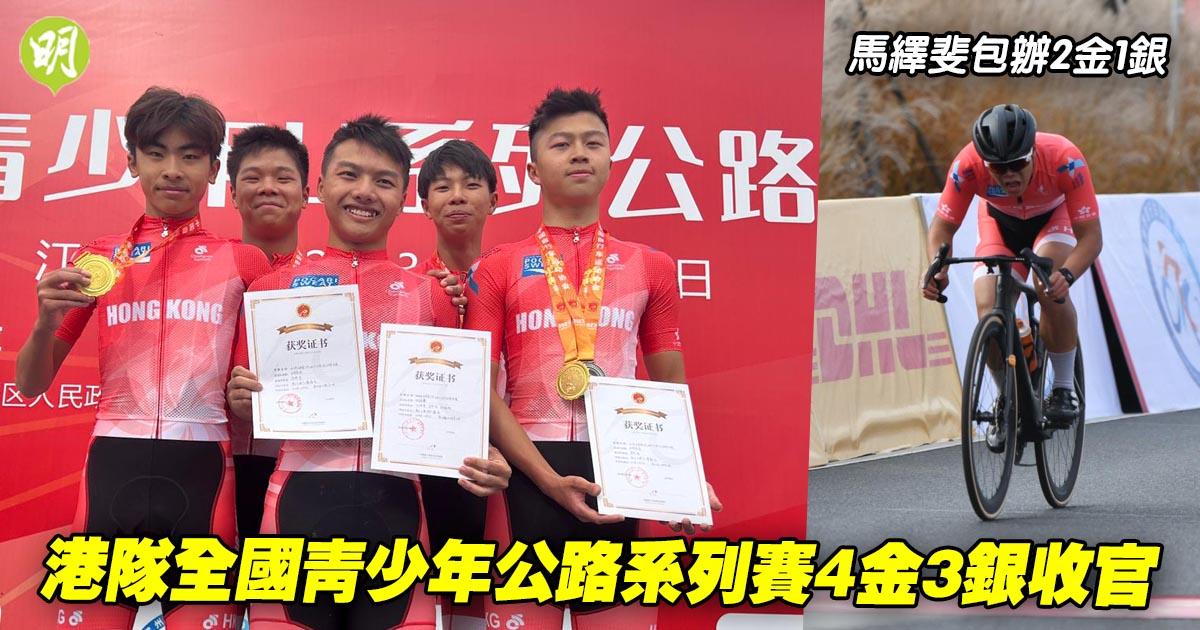 單車|港隊全國青少年公路系列賽4金3銀收官 馬繹斐包辦2金1銀 (19:33)