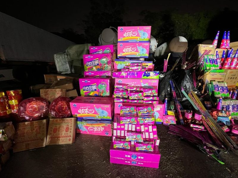 新界北總區反三合會行動組第二隊高級督察陳養泉指,警方今日下午(12日)在新田青山公路一個露天貨櫃場拘捕一名59歲姓何本地男子,並在其駕駛的30噸貨車上檢獲大約兩噸煙花爆竹。經初步檢查,該批煙花相信產地為中國湖南省,惟入境、銷售途徑及被捕人角色有待調查確定。