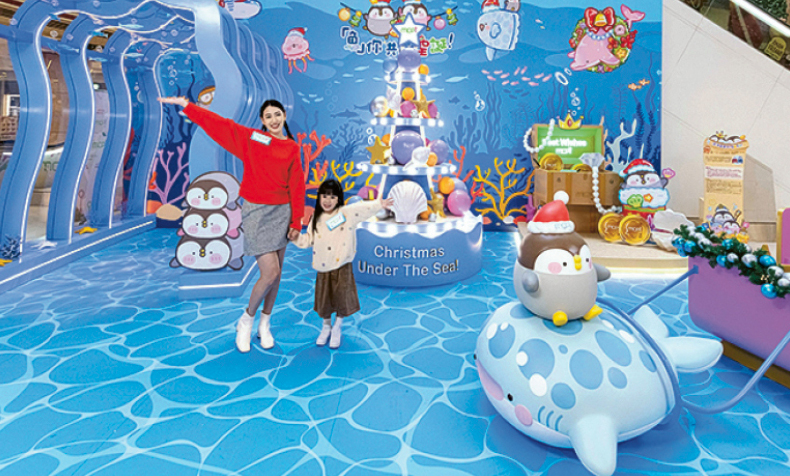 至於上水中心購物商場中庭的「夢幻珊瑚海@SSC」,企鵝波波駕駛着「巨形深海潛艇」進入絕美珊瑚群,當中逾5米高的「光影幻彩聖誕樹」掛滿了閃爍聖誕裝飾,更設有巨型貝殼尊貴席,可讓小朋友打卡。此外,同場亦有「魚魚力爭向上大挑戰」互動遊樂裝置,讓小朋友贏走精美禮品。