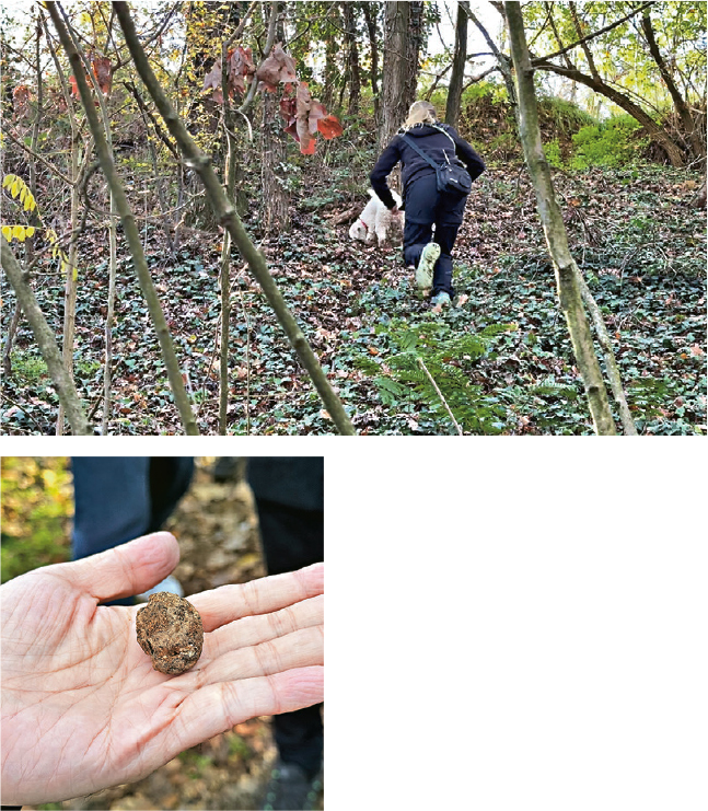 白松露約在離地面10至15厘米的泥土下生長,由於從泥土裏散發出來的氣味較薄弱,因此白松露獵人除了依靠經驗猜測其生長位置,還需訓練狗隻協助搜尋。Ronny說尋找白松露的時間可以非常漫長,加上其生長位置是獵人的命脈,因此不會隨便透露,以免被其他獵人捷足先登,故真正的狩獵行動只會在夜深出發,獵人還會先繞路確認沒人跟蹤,才會摸黑到山上搜尋。Ronny表示,坊間推出的白松露狩獵行程,一般只是獵人事先把白松露埋在泥土中,純粹是滿足觀光客的表演。●