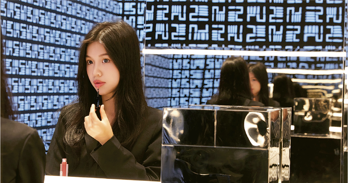 【明報專訊】近日內地美妝品牌「×美日記」在廣州正佳廣場開門店,聲稱是全球首間為給客人帶來「超現實、未來感、沉浸式」全新美妝購物體驗的店舖,記者經過便順便感受如何「超現實」。還沒走進,遠遠就能見到店內LED大屏幕,品牌LOGO以及標誌配搭黑、銀兩色不停流動、變換,加上全鏡面天花板及櫃枱,確實是全新視覺感受。