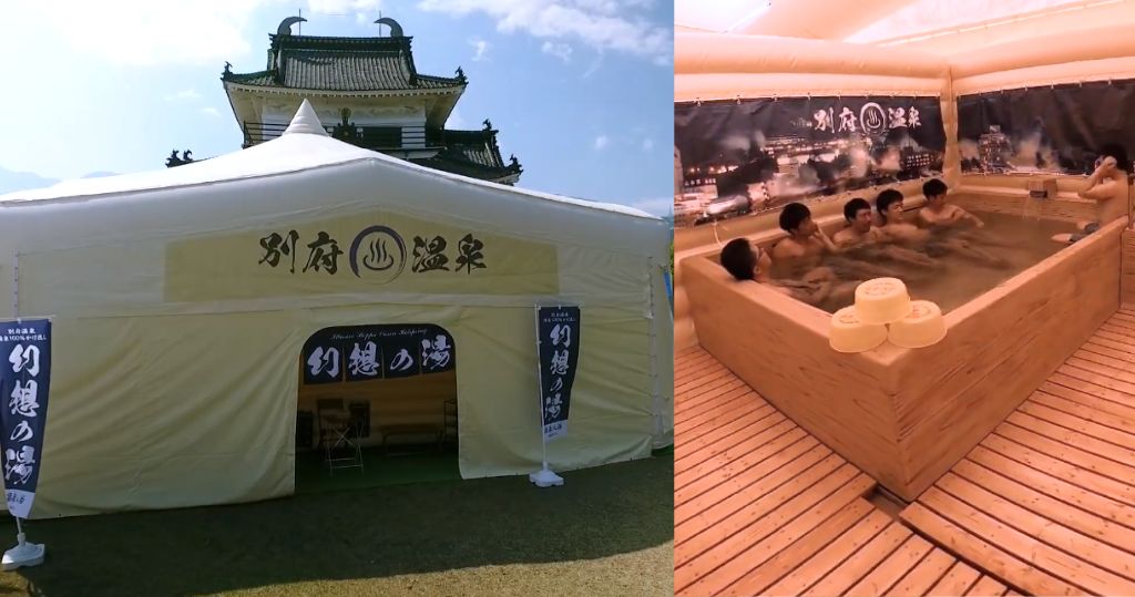 別府市稱,「幻想之湯」的概念於2016年熊本地震後萌生,今次首度在災區啟用。這個充氣式帳篷溫泉分男女浴池,每個浴池長約3米、闊約2.2米,一次最多容納7至8名成人,預料每日可供250人使用。當局將約10噸溫泉水以專用儲罐保溫,並由貨車運送,耗盡後會用石川縣七尾市和倉溫泉的熱水持續運作。(共同社)