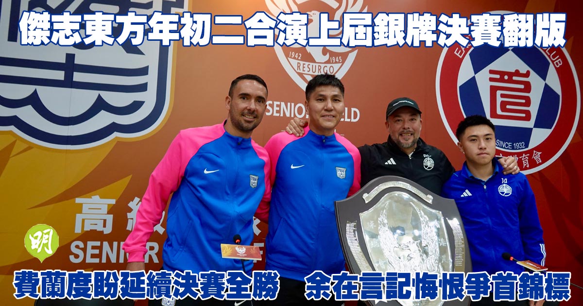 香港球壇下周農曆新年期間將舉行連場大戰,先於下周日大年初二下午3時在旺角大球場舉行高級組銀牌決賽,由傑志對東方,上演上屆決賽翻版兼今季首場「傑東大戰」。今季加盟東方的22歲大港腳余在言稱,仍記得上季效力標準流浪在足總盃決賽慘負傑志,不想再有悔恨,會力爭個人首項錦標;已贏過3次銀牌錦標的「藍鳥」翼鋒費蘭度稱,仍有動力想再贏多次。