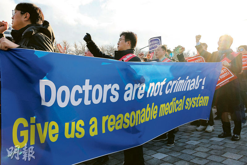 【明報專訊】韓國保健福祉部周一(26日)向所有抗議增加醫科學額而罷工的資淺醫生發最後通牒,要求他們本月內(即最遲本周四)復職,可既往不咎,否則3月起將採取處分,包括暫停醫生執照並起訴。醫生工潮發展至今一周,迄上周五(23日)有逾萬名資淺醫生(佔整體80.5%)請辭,其中逾9000人(佔整體72.3%)離開崗位,衍生亂象。大田消防本部昨披露,一名八旬婦人上周五中午暈倒,因醫生和病牀不足等,連續被7醫院拒收,最後送到一間大學醫院時已是53分鐘後,抵院約10分鐘後死亡。周日清晨,另有一名腹痛下體出血女子,被14間醫院拒收後被一間大學醫院接收。