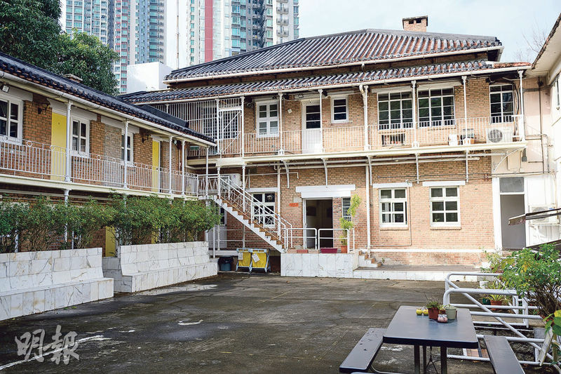 穿過正門直走至中央的露天廣場,左面的近代白色建築為後期加建。張永青表示:「因育嬰院時期,最高峰接收了70多個小朋友,原本的建築容納不下,所以申請加建用作宿舍。」現在左右兩旁建築的房間多用作睡房及活動室,提供約80個宿位,還有可舉辦各類活動的禮堂。