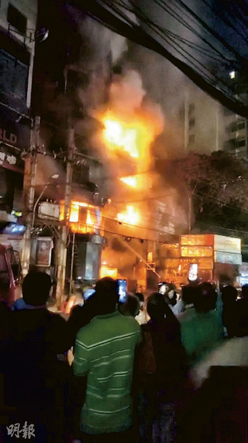 【明報專訊】孟加拉首都達卡一棟欠缺防火設施的大廈周四(2月29日)晚發生大火(圖),造成至少46人死亡,15人危殆。消防局和民防局當晚約9時半接報,指該棟7層高大廈起火,至少13支消防隊趕到現場,於當晚11時半左右撲熄,救出約75人,數十人當時已經昏迷。大火源於大廈一樓一家印度餐廳。消防初步相信是餐廳泄漏氣體或煮食爐起火肇禍,樓上多家餐廳都使用石油氣罐,部分更放在樓梯,助長火勢蔓延。大火發生後,有人沿水管爬到地面,亦有人從窗戶跳下逃生,多達50人一度被困天台。醫生表示,死者大部分窒息而死,亦有人跌死。一名消防高官表示,這棟大廈只有一條樓梯,沒有緊急出口或其他安全措施。