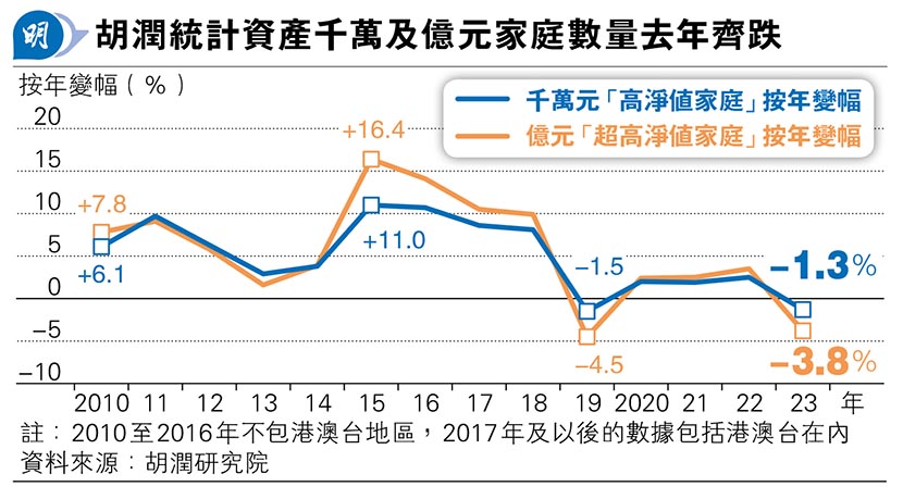 胡潤:中國富裕至超高淨值家庭量齊跌