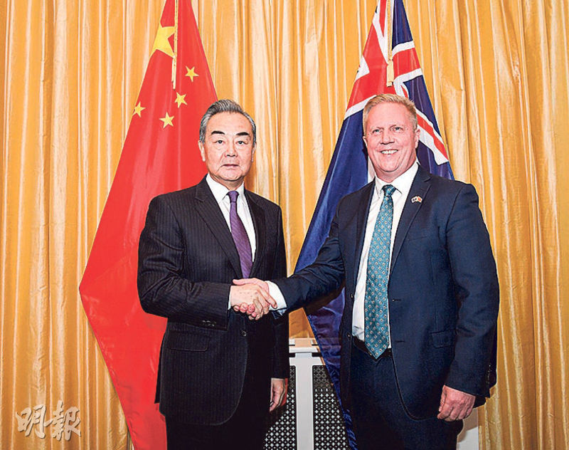 【明報專訊】外交部長王毅周一(18日)在惠靈頓會見新西蘭貿易部長麥克萊,雙方表示要共同維護自由貿易,反對保護主義。外交部昨(19日)披露,麥克萊將於4月訪華;紐副總理兼外長彼得斯年內亦將訪華。另外,紐總理拉克森料將於年內訪華,若成行,將是這位保守派國家黨總理去年11月上任後首次訪華。