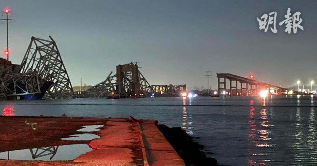 即時國際 美國巴爾的摩大橋遭船撞橋面斷裂 料7人墮河 (15:24) 發佈於 2 年 前 2024 年 3 月 26 日 By 明報 美國馬里蘭州巴爾的摩一條大橋,在當地時間周二(26日)凌晨約1時半,被一艘貨櫃船撞上後斷裂,大段橋面崩塌墜河。美聯社報道,事發時有多輛汽車及有人墮河,估計或有多達7人落水。報道亦稱,貨櫃船撞橋後有起火。 該大橋名為Francis Scott Key Bridge長約3公里,橫跨帕塔普斯科河(Patapsco River)。海運集團Synergy Marine Group表示,該公司一艘懸掛新加坡國旗的貨櫃船「Dali」撞上大橋其中一個橋墩,船上人員無恙,暫未知撞橋肇因。(路透社/美聯社) 相關文章:編輯推介 Up Next 馬來西亞便利店售襪子印「真神」字樣 5人被控傷害宗教情感 (16:35) 不要錯過 韓國近百醫科教授辭職 (17:24) 繼續閱讀 贊助商 猜你喜歡 陳帆川:內容農場集團 如何靠翻新網站賺錢 蔡曉瑩:虛擬偶像:一種流行文化及娛樂媒體產業 洪雯:重塑階層流動 構建「橄欖形社會」 (四) 宋恩榮:香港已輸入數十萬人才 為何總人口不增反減 聞風筆動:李家超「副秘」獲「越級」提升特首私人秘書/文:李先知 【開箱】《迷宮裡的魔術師》 福山雅治變魔術破奇案