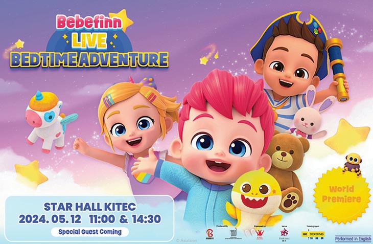 【明報專訊】母親節未有節目?不如一家大細齊齊陪超級可愛的Bebefinn冒險吧!20個月大的Bebefinn將首次踏上舞台,為小朋友帶來一場具互動的音樂劇。故事講述Bebefinn三姊弟和一名特別的客人,一同踏上了尋找墜落之星的冒險之旅。此劇舞台設計充滿鮮艷的色彩及圖像,還有小朋友最喜歡的歌曲和舞蹈,讓大家盡情投入Bebefinn的神奇旅程。