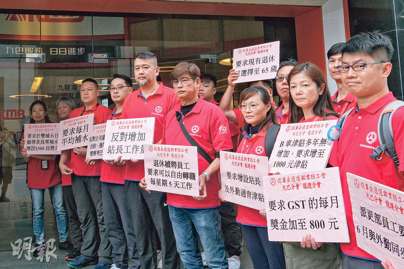 【明報專訊】汽車交通運輸業總工會九巴及龍運巴士分會昨就薪酬調整會見資方,工會提出今年加薪8%,並要求發放節日上班津貼300元、增聘人手和資源等。汽車交通運輸業總工會九巴分會主任黎兆聰表示,8%加幅並非「獅子開大口」,願意與資方再商討。九巴稱會繼續與工會及員工溝通,期望達成共識。