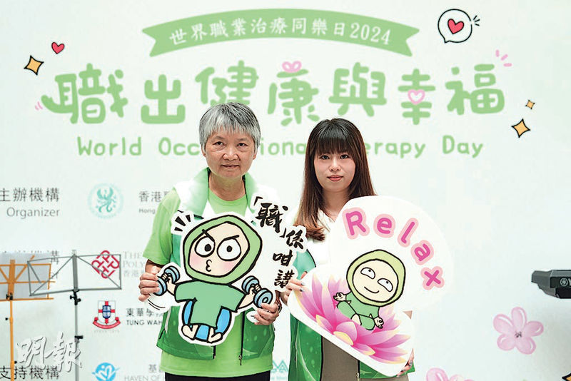 【明報專訊】昨日為世界職業治療日,香港職業治療學會舉辦同樂日,透過遊戲攤位及資訊展覽等讓市民認識該行業工作。近年學童精神健康問題備受關注,香港職業治療學會主席鄭慧慈認為職業治療師能從活動入手,訓練有需要學童生活技巧,降低他們自殺的風險,並建議政府未來規定至少一名職業治療師駐校,以協助識別及處理風險個案。