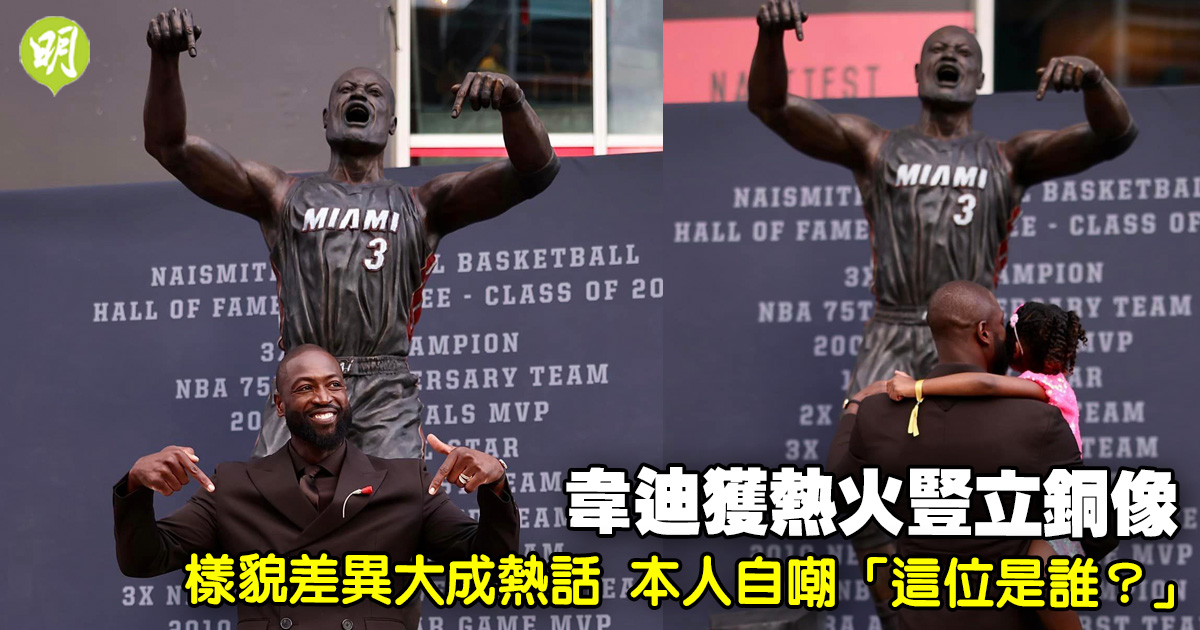 籃球名人堂成員的NBA名宿「閃電俠」韋迪,昨日(27日)獲母會邁阿密熱火在主場館卡西亞中心外豎立銅像,惟該銅像樣貌與本人差異甚大,連韋迪亦在揭幕儀式上嘲「這位是誰?」