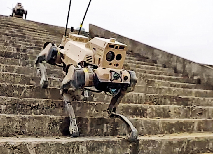 【明報專訊】由中國兵器裝備集團研發的「機器狼群」無人作戰系統昨首度在中國航展亮相。該型名為「機器狼」的四足機械人,就像野狼一樣擅長「集群作戰」,可為特戰分隊和步兵分隊提供集群式綜合作戰手段。