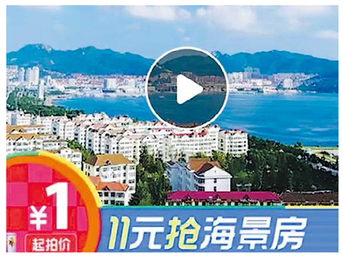 【明報專訊】山東威海乳山近日的「花11元拍下42平海景房」一事引發熱議。拍賣網站客服人員表示此事屬實,這是網絡平台與房企機構推出的「雙11」活動,該房並非「法院拍賣房產」,是合作機構所有,產權、手續完整。拍賣公司稱,該價格相當於白送,可以理解成這套房屋就是公司的一筆廣告費。