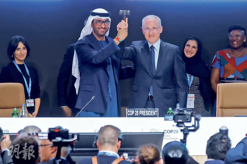 【明報專訊】《聯合國氣候變化框架公約》第29次締約方大會(COP29)昨日(11日)在南高加索國家阿塞拜疆首都巴庫揭幕,來自阿聯酋的上屆COP28大會主席賈比爾將象徵會議主持者的槌子交給今屆大會主席、阿塞拜疆生態與自然資源部長巴巴耶夫(Mukhtar Babayev)。惟特朗普即將重回白宮,代表美國很可能再一次退出《巴黎協定》,為這屆氣候大會蒙上陰影。