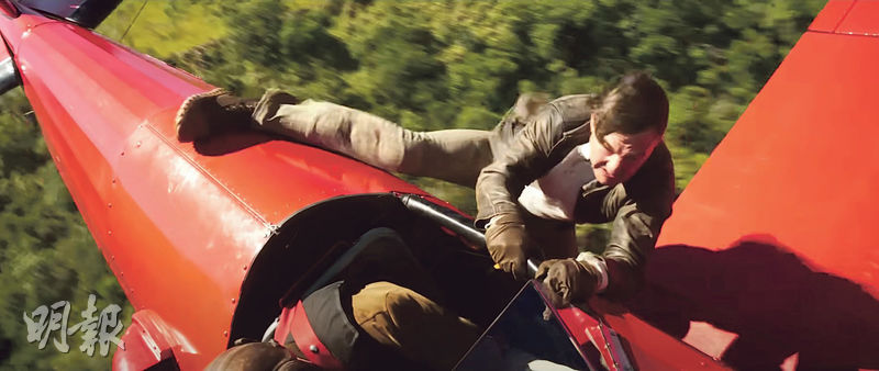 事實上,湯告魯斯早在第5集《職業特工隊:叛逆帝國》已曾出現徒手抓住飛機門然後起飛的特技場面,但今集難度更高,因為雙翼機體積較細,他在有限空間上攀爬,實在勇氣可嘉。
