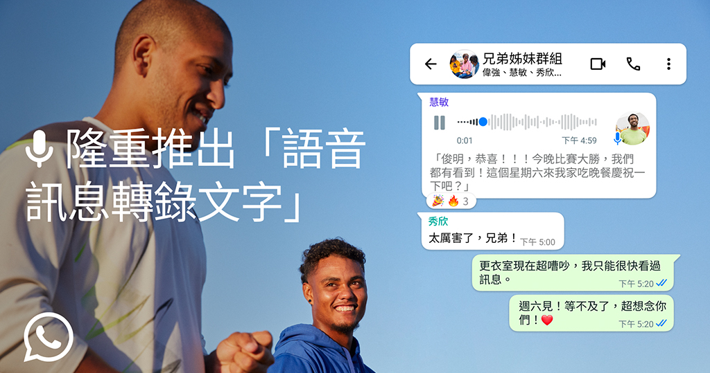 WhatsApp於網誌表示,轉錄文字功能將於未來數周在全球推出。用戶可在WhatsApp應用程式內前往「設定」,按「對話」內的「語音信息轉錄文字」,以開啟或關閉轉錄文字功能,以及選擇轉錄文字的語言。如要將語音信息轉錄為文字,用戶可長按信息並點按「轉錄為文字」。詳細設置教學】