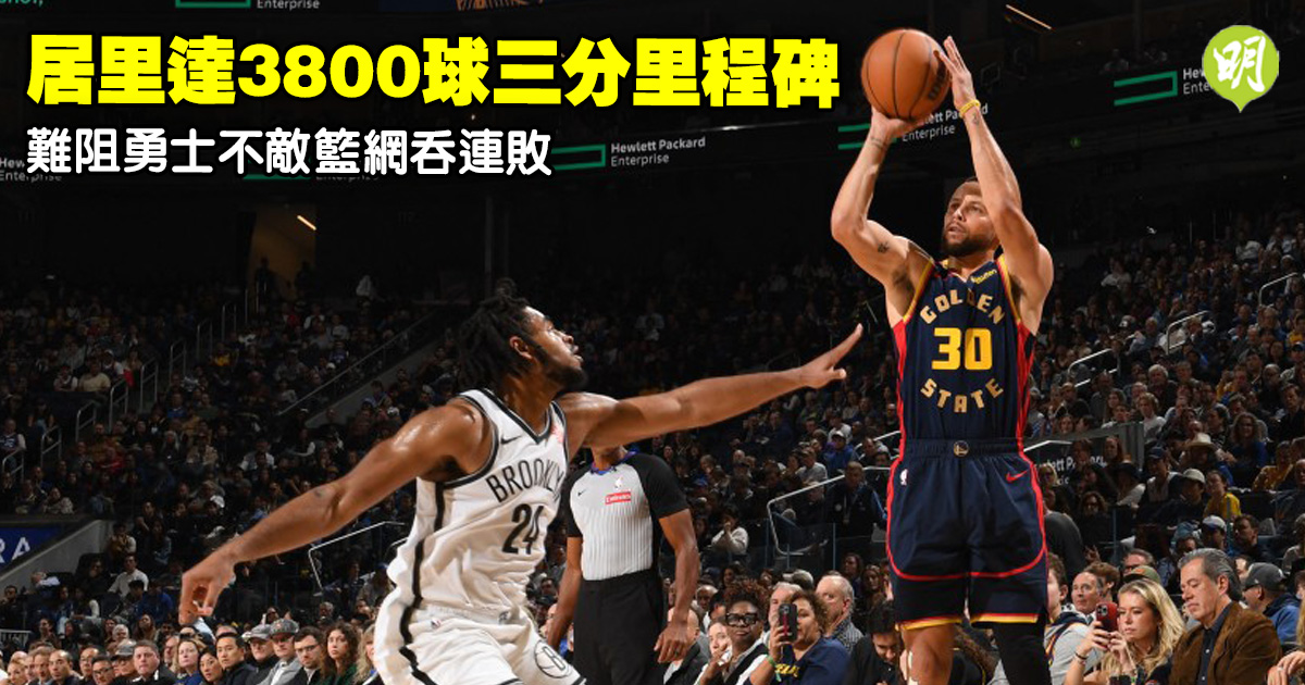 金州勇士球星「咖喱仔」史堤芬居里今(26日)於NBA常規賽獨取28分,包括8記三分球,生涯累積射入3807球三分,成為聯盟史上首名突破3800球的球員,惟球隊最終在主場以120:128不敵布魯克林籃網,未能雙囍臨門。