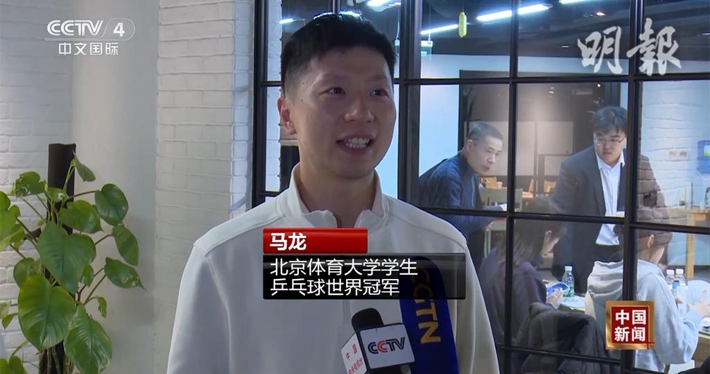 馬龍目前也是北京體育大學的學生,馬龍說,對台灣其實還是有一些向往,可能從電視上或者課本上了解到,這次想實地去看一看,當然對台灣的美食也已經期待很久。這次不光是以一個運動員的身分,另一方面也是以一個大學生的身分跟大家交流,「我覺得這樣可能大家感覺更親切一些。我也很期待到大學當中跟他們一起用乒乓球來交流。」